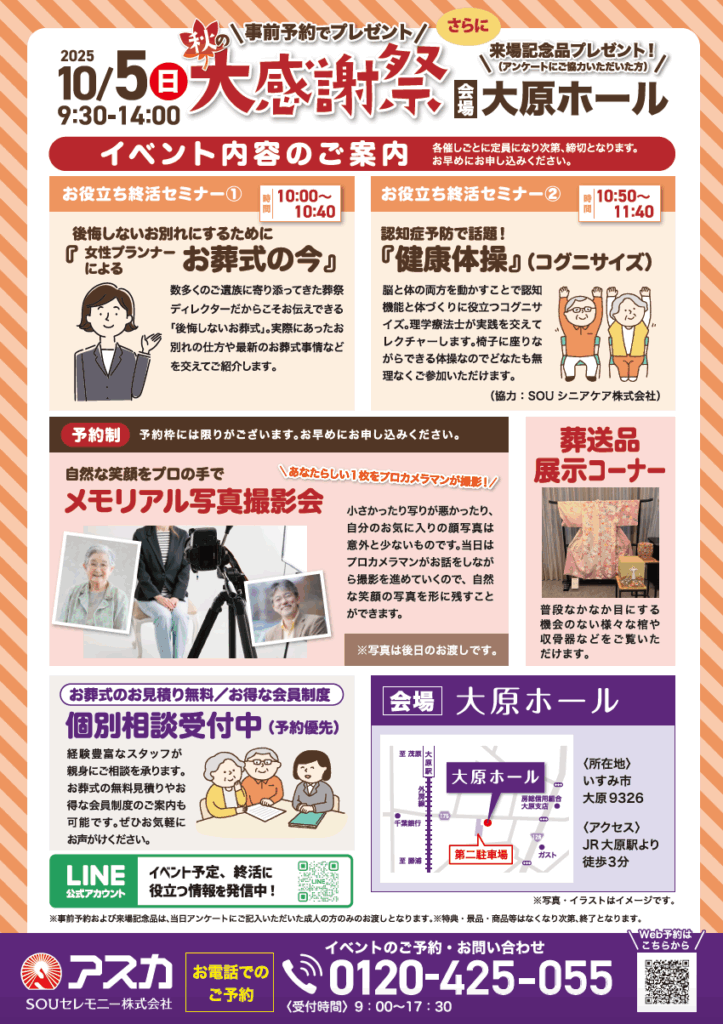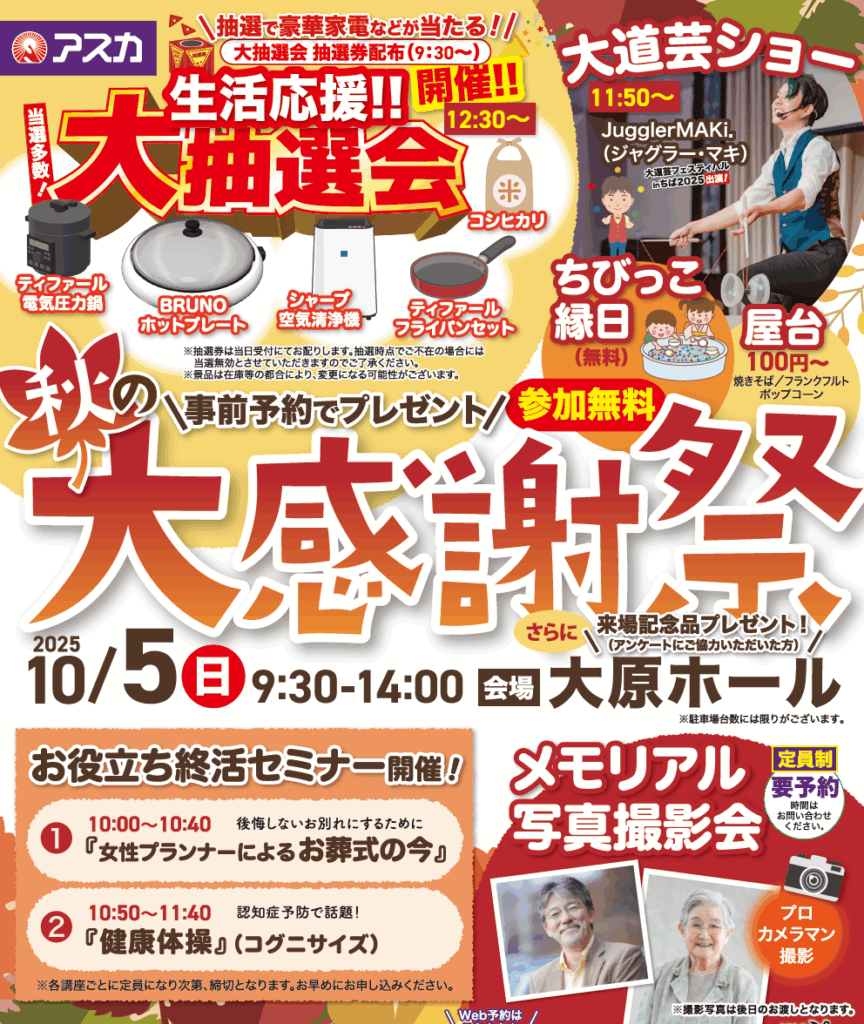 イベント 【終了いたしました】10/5(日)大感謝祭‼️生活応援「大抽選会」/メモリアル写真撮影/認知症予防コグニサイズ体験/終活セミナー/大道芸ショーほか盛りだくさん‼️