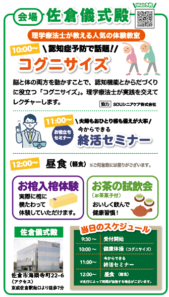イベント 4/22(水)認知症予防で話題の健康体操(コグニサイズ)&終活セミナー&入棺体験&お茶の試飲会(軽食付き)