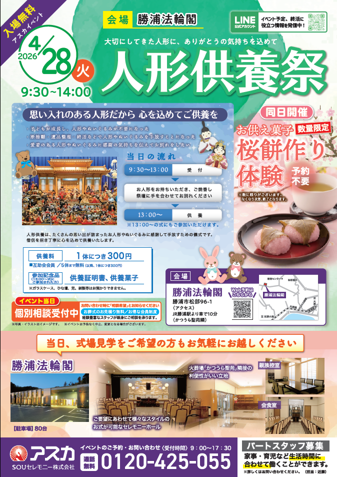 イベント 4/28(火)人形供養祭&桜餅づくり体験