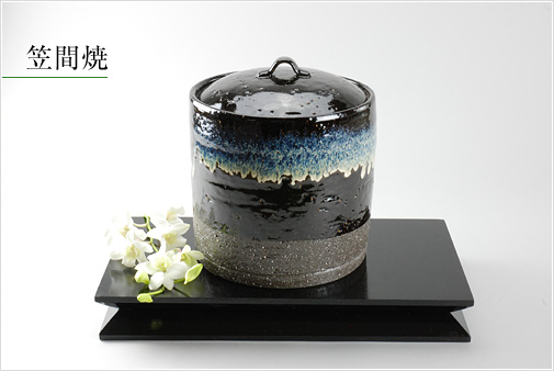 どっしりとした手触りが特徴の笠間焼きの収骨器です。品があり、深みのある色合いが印象的です。