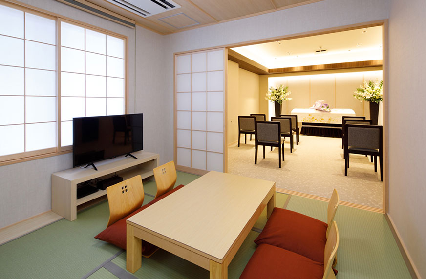 1日葬や火葬式向けのプレミアムメモリアルルーム。ご家族だけの通夜など、故人とのお別れまでの時間をゆとりをもってお過ごしいただけます。