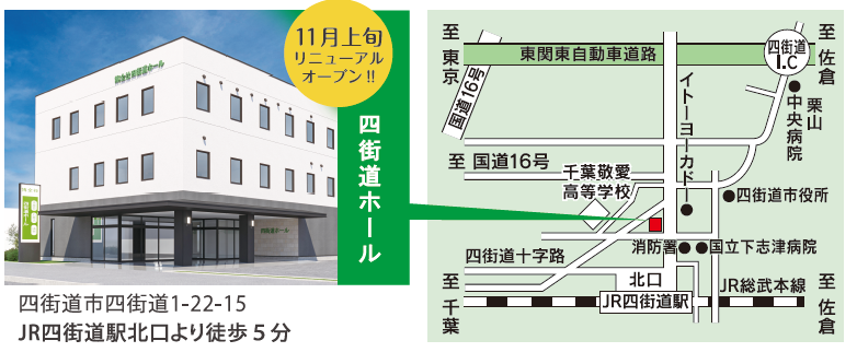 四街道ホール(旧四街道儀式殿)リニューアルオープンのお知らせ